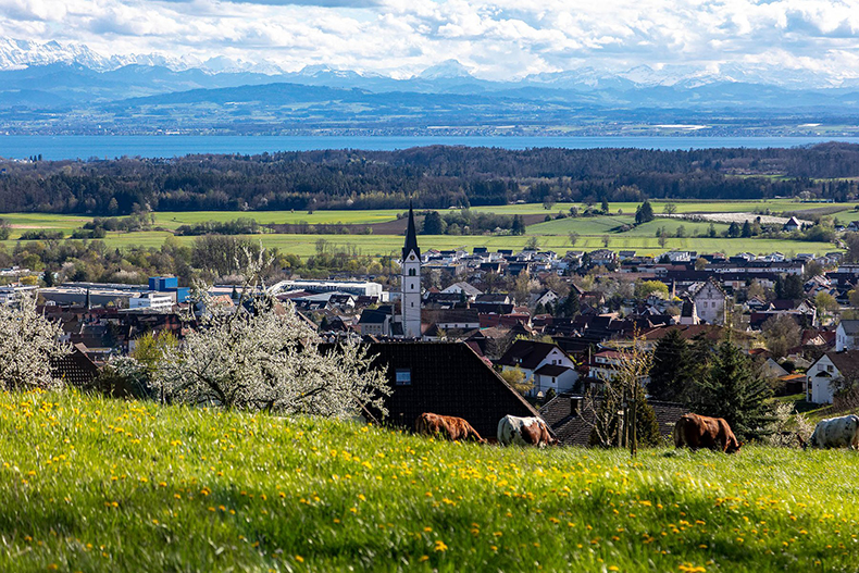Eingebettet in herrlicher Naturlandschaft, liegt unsere Stadt mitten im Herzen des Bodenseekreises, einer Region mit vorzüglichen Zukunftsaussichten. Markdorf mit ihren rund 14.000 Einwohnern schmiegt sich an die Südseite des Gehrenberges. Von hier aus eröffnet sich ein grandioser Panoramablick auf die Bodenseelandschaft und die dahinter aufragende Alpenkette.