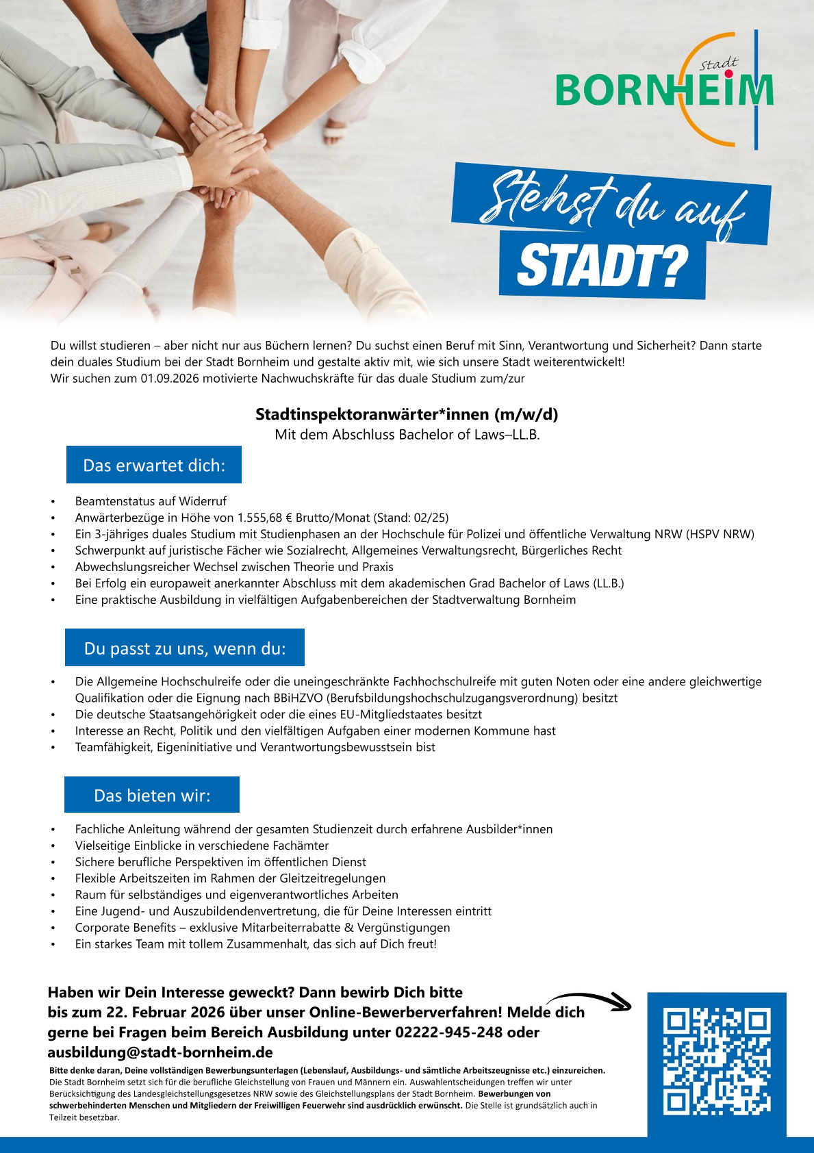 Stadtinspektoranwärter*in 2026 (g.D.) | Stadt Bornheim | 614